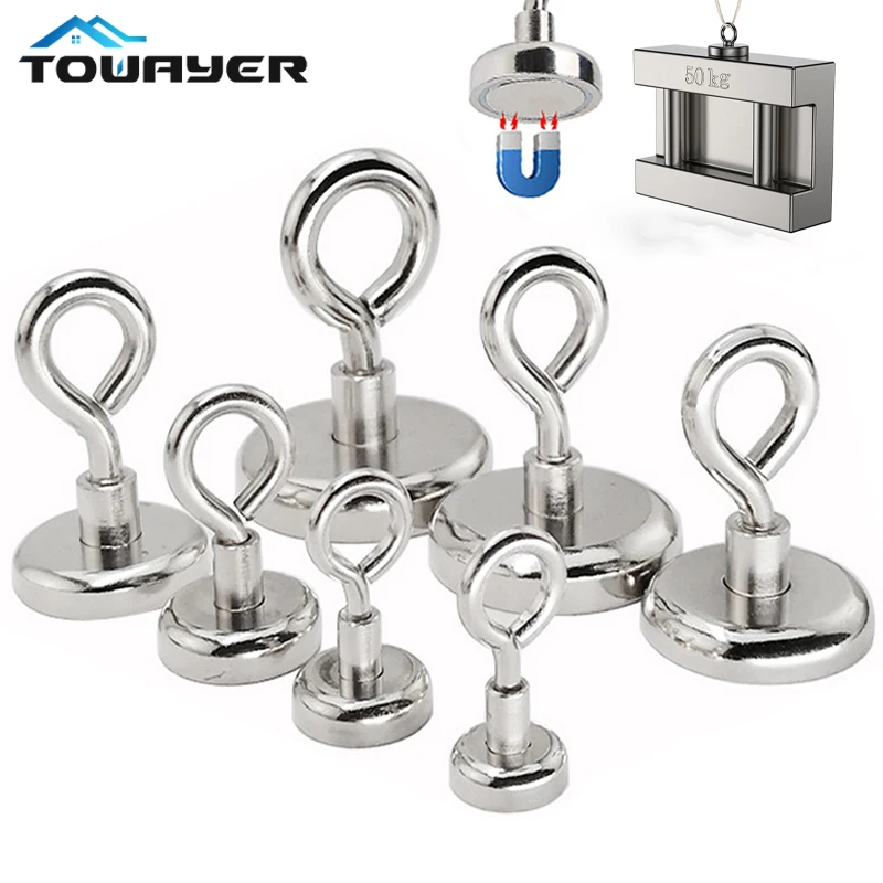 1PCS Neodymium magnet powerful fishing magnet deep sea fishing magnet with ring circular search magnetic hook magnet searcher