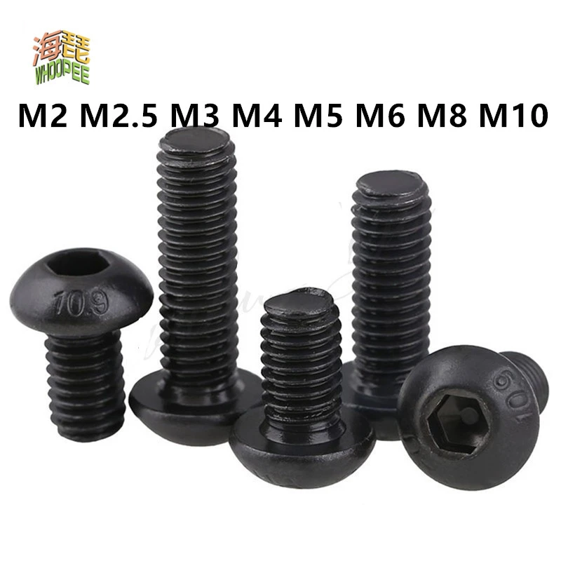 10-50pcs/lot ISO7380 Hex Screw M2 M2.5 M3 M4 M5 M6 M8 Black Button Head Hex Socket Cap Screw Hexagon Socket Round Head Screws