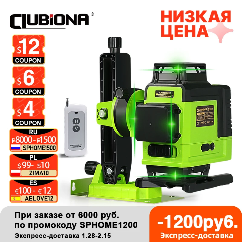 Clubiona 4D 16 lines Professional German Core Floor Ceiling Remote Control Green Line Laser Level with 5000mah Li-Ion Battery