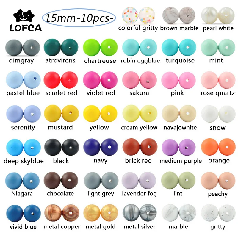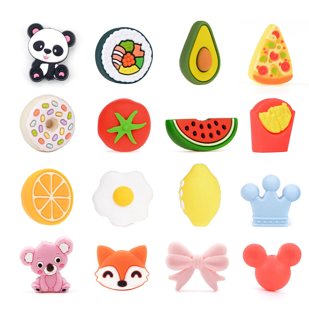 LOFCA 10pcs Silicone Beads Teether Baby Teething Toys Cartoon BPA Free Chew For Baby Food Grade Pacifiers Necklace Accessories