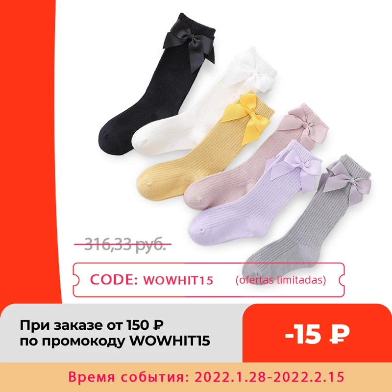 Solid Children Socks With Bows Cotton Baby Girls Socks Soft Toddlers Long Socks For Kids Princess Knee High Socks for Girls 2022