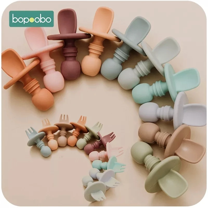 2pc Baby Silicone Spoon Feeding Set Kid Dishes Toddlers Infant Feeding Accessories Spoon Silicone Tableware Children's Goods