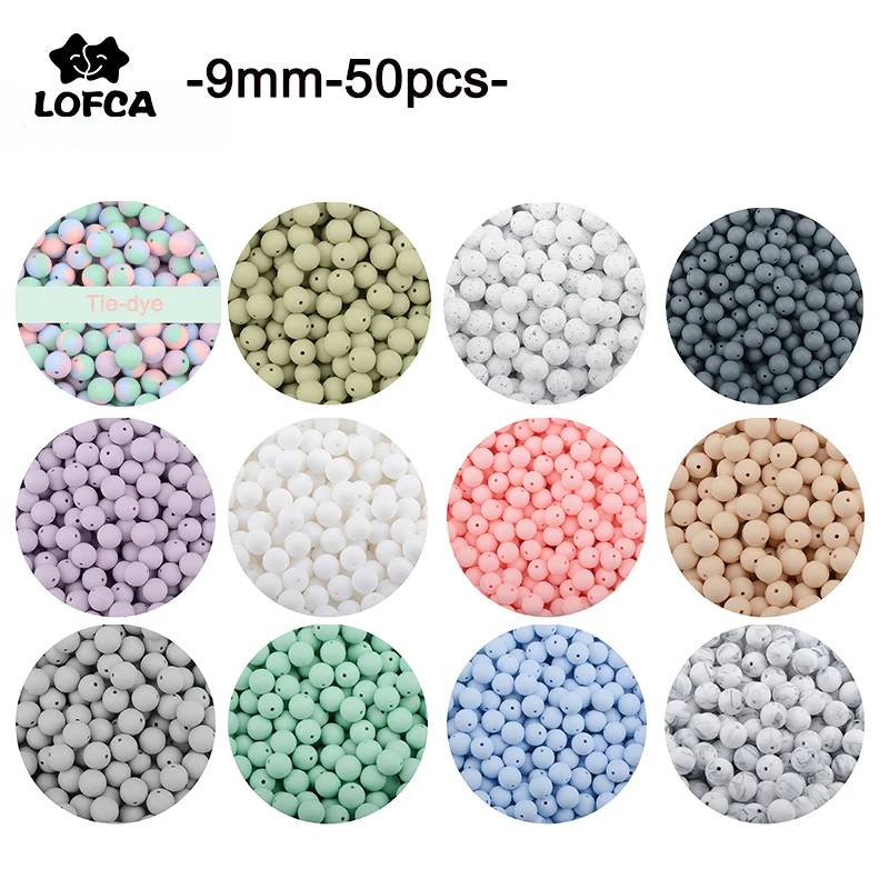 LOFCA 50pcs/lot Silicone 9mm Tie Dye Loose Teether Beads Baby Toy Teether Chew BPA Free Food Grade DIY Jewelry Necklace Making