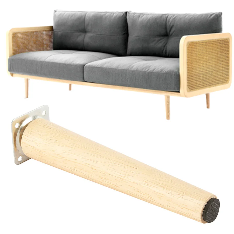 4 Pcs Solid Wood Furniture Legs Slanting Straight Feet Sofa Coffee Table Cabinet Leg with Metal Plates Screws 8/15/20cm High