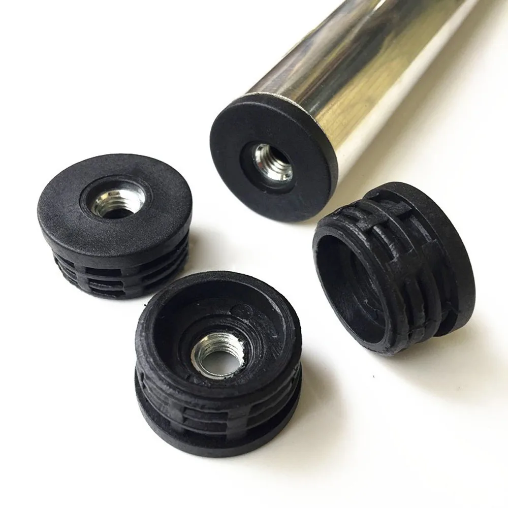 2/4/8pcs Round Black Plastic Blanking End Cap Caps Pipe Tube Inserts With M8 Metal Thread Dia 22/25/30/32/38/50mm