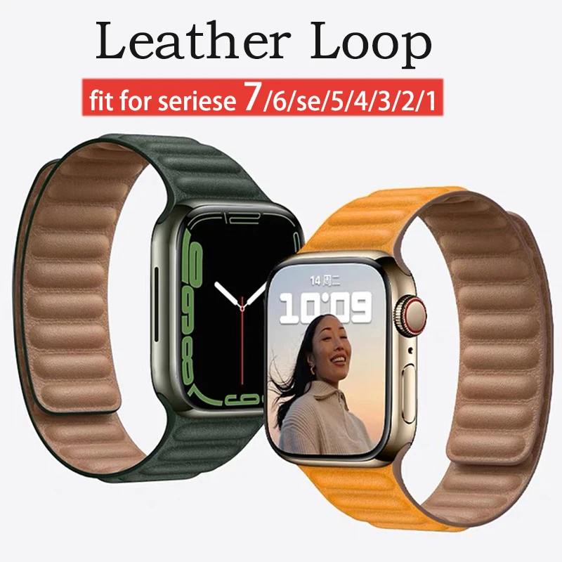 Original Leather Bracelet for Apple watch band Series 7 6 SE 44 40 38 mm 42mm Correa Magnetic Loop bracelet iWatch 5 4 3 45 41mm