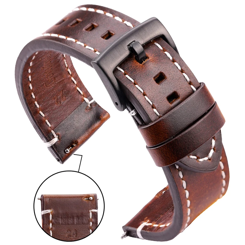 Genuine Leather Watchbands 18mm 20mm 22mm 24mm Black Dark Brown Women Men Cowhide Watch Band Strap Belt With Buckle