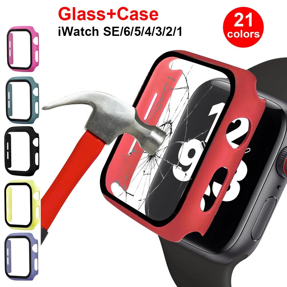 Glass+Case For Apple Watch Series 6 SE 5 4 44mm 40mm Bumper Screen Protector Cover for iwatch 3 2 1 38mm 42mm Accessorie
