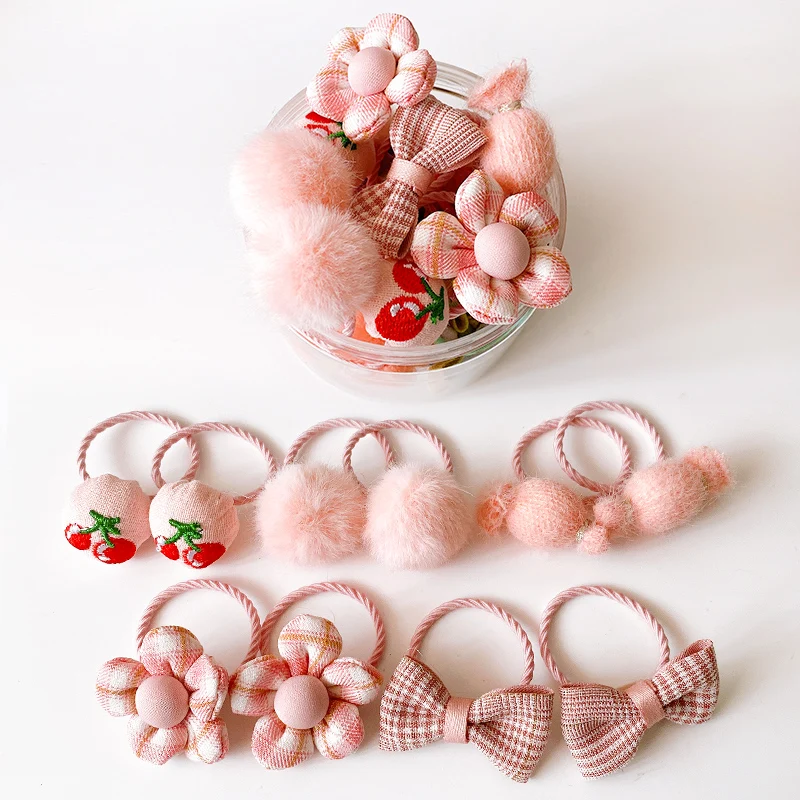 20Pcs Children elastic hair band Cute Polka Bow Rabbit Ears Headband Girl Ring Scrunchie Kids Ponytail Holder Hair Accessories