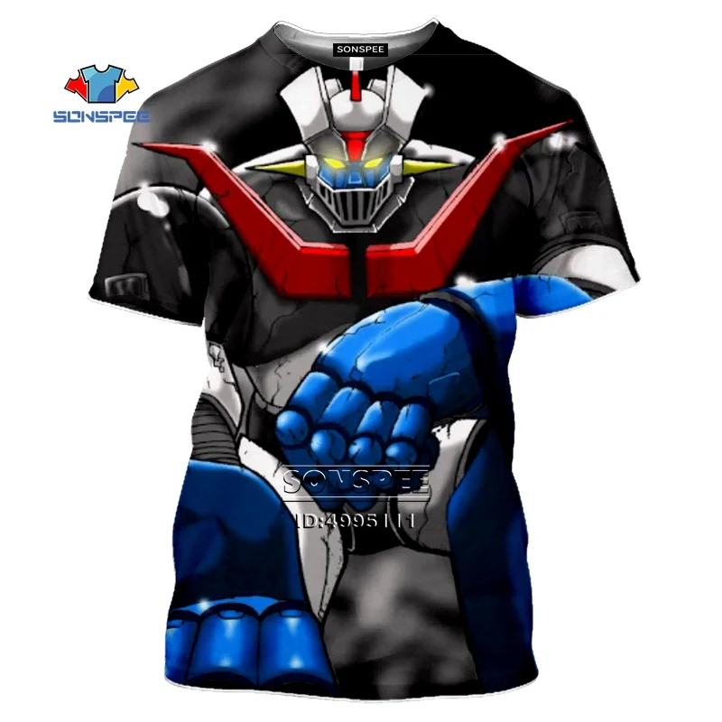 SONSPEE 3D Print Sci-fi Anime Mazinger Z T-shirt Robot Man's T-shirt Summer Short Sleeve harajuku Shirt Armored Warrior Top Tees