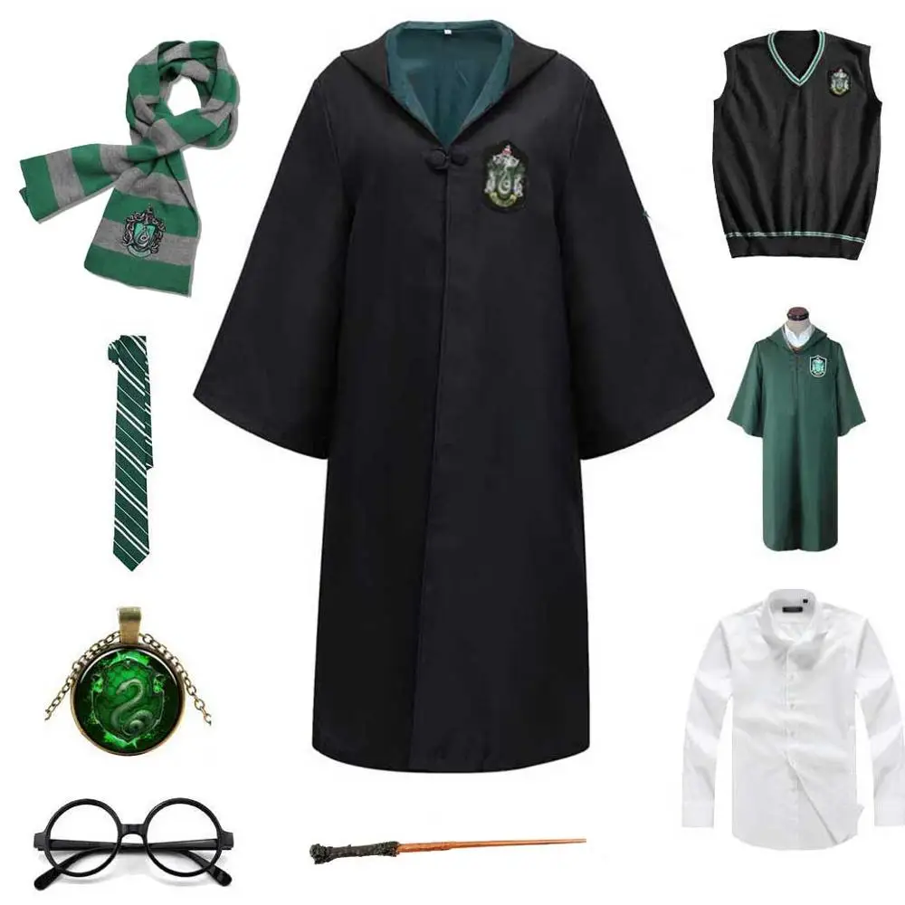 Men Women Robe Cloak Green Quidditch Clothes Magic School Party Uniform Cosplay Halloween Costume