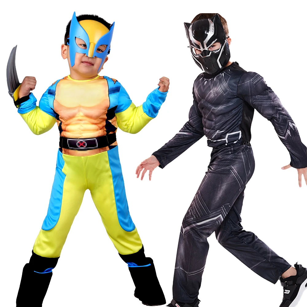 Halloween Carnival Party leopard Muscle With Mask Movie Children Ironboy Wolf Spiderboy Christmas Cosplay Costume