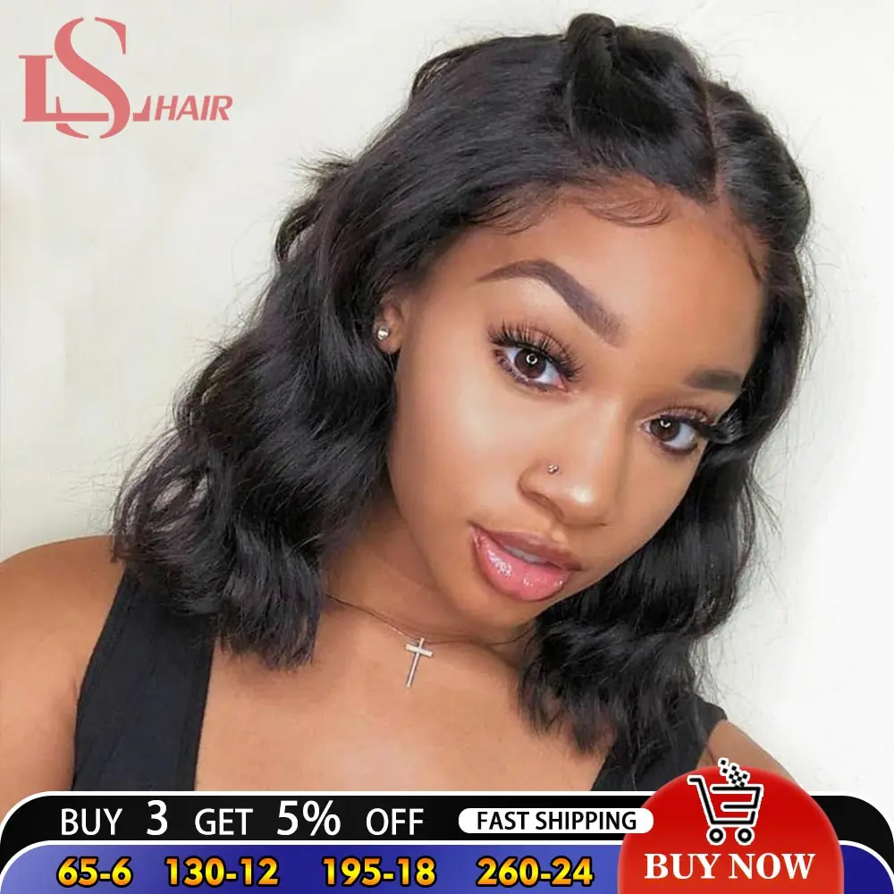 13x4 Short Bob Wig Loose Body Wave Lace Front Human Hair Wigs for Black Women Lace Closure Wig Human Hair Ocean Wave Bob Wigs