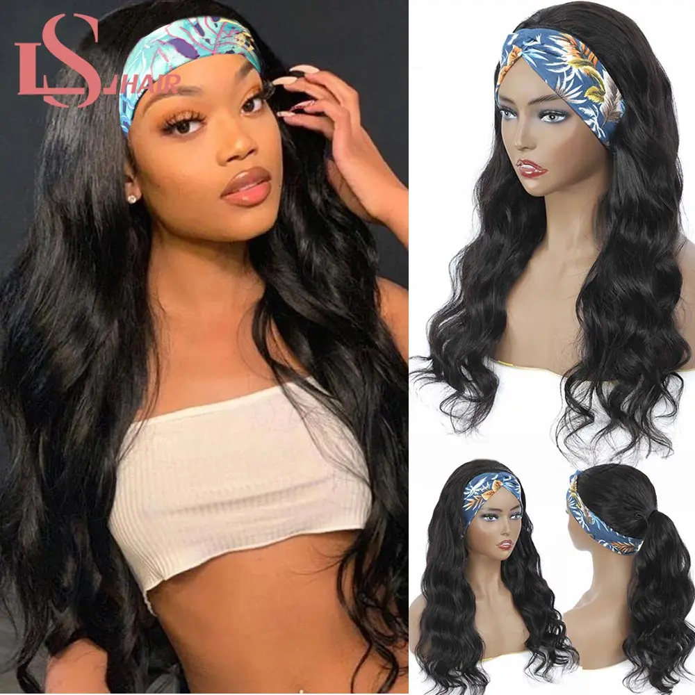 LS HAIR Body Wave Headband Wig Human Hair Easy Half Wig Brazilian Remy Hair Headband Wig Natural Hair Machine Wig