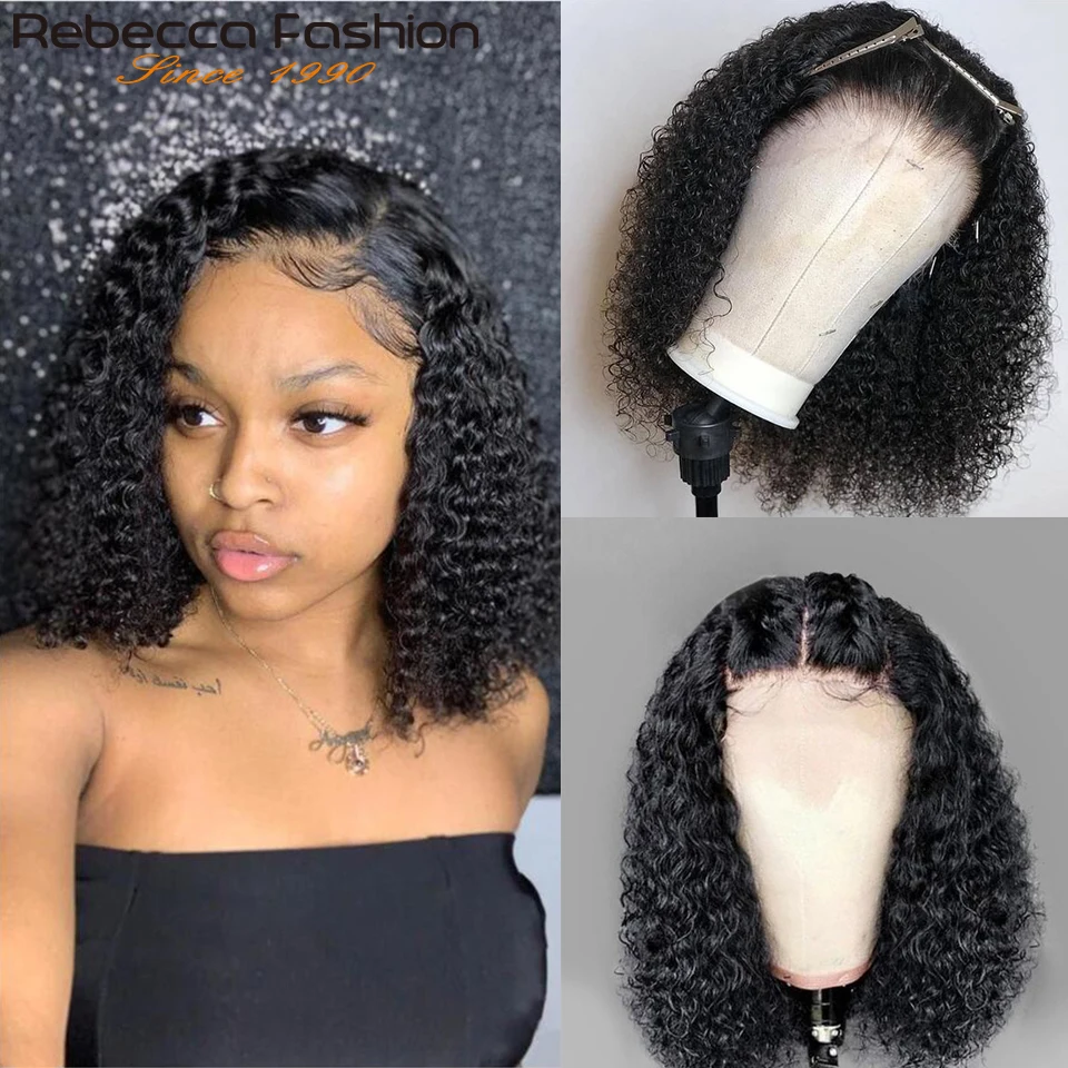 Rebecca 13X4 Cut Bob Wig Short Lace Front Human Hair Wigs Brazilian Straight Bob Wigs Remy Deep Curly Lace Frontal Wig