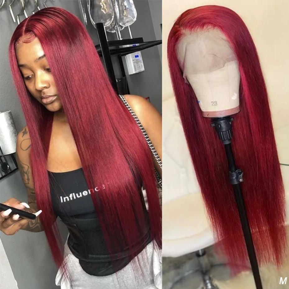 99j Red Burgundy Colored Human Hair Wigs Maylaysian Straight Highlight Wigs 150% 613 Blonde Remy Human Hair Lace Wigs For Women