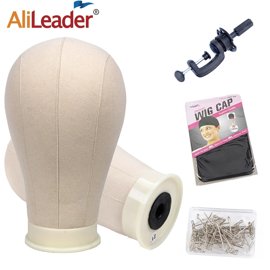 Alileader Cheap 21/22"/23"/24" Canvas Block Head Training Mannequin Head Mannequin Manikin Head Wig Stand Wig Head Stand Holder
