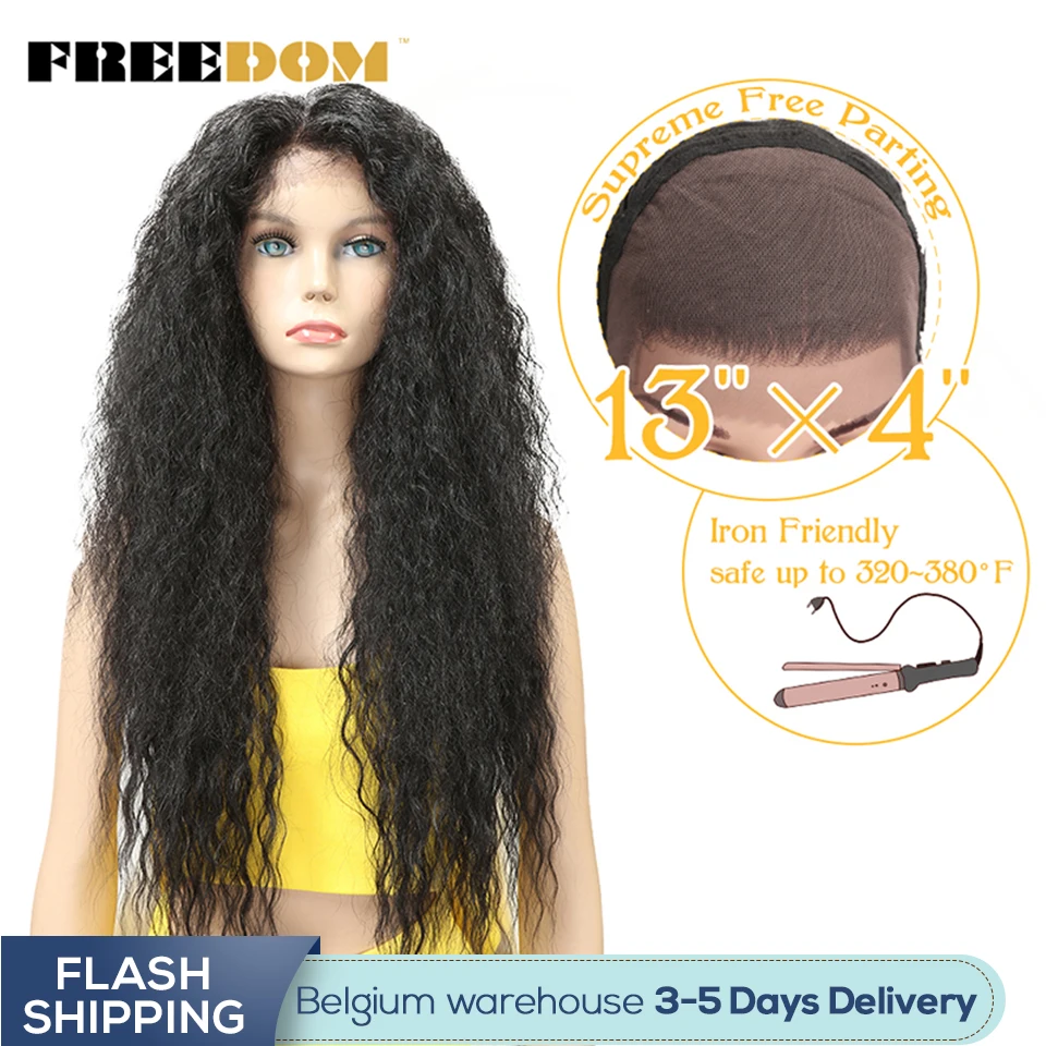 FREEDOM Kinky Curly Long Ombre Lace Front Wig With Baby Hair Natural Hairline Heat Resistant Synthetic Hair Wigs For Black Women