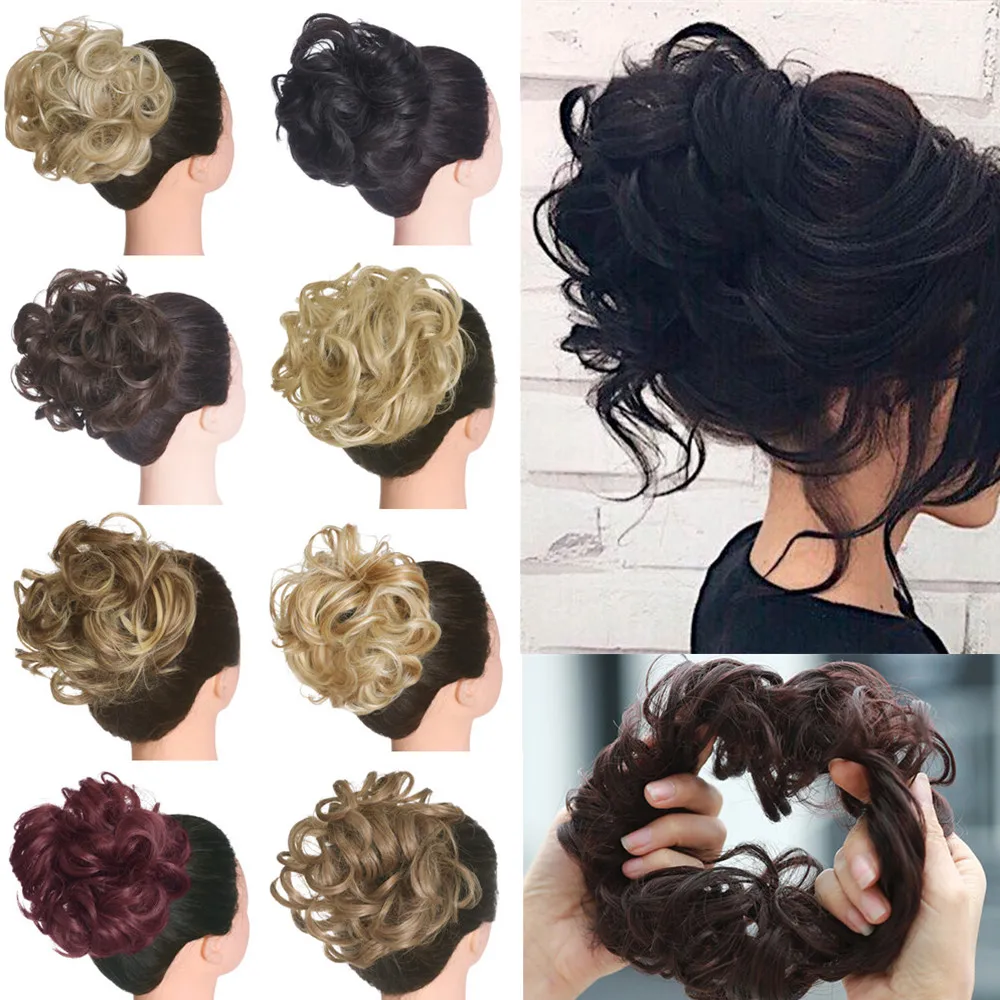 Messy Hairpieces for Women Hair Bun Elastic Scrunchie Chignon Updo Donut Curly Hair Rope Rubber Band Synthetic Wrap Ponytail