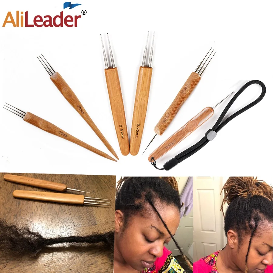 Alileader 0.75mm Double Head Dreadlock Wood Handle Crochet Needle Hook For Dreadlocks Braids Hair Making Needle Tools For Dreads