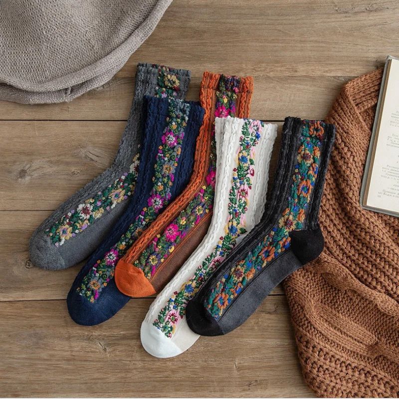 Women Socks Cotton Euramerican National Wind Flowers Autumn and Winter Ladies Socks Warm and Cute 2020 New Fashion hot