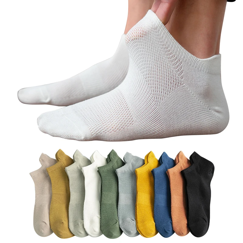 5 Pairs Man Cotton Short Socks Fashion Breathable Mesh Men Comfortable Solid Color Casual Ankle Sock Pack Male Street Fashions