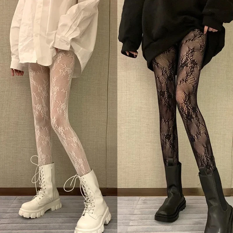 Classic Lolita Hollowed Out Lace Mesh Stockings Bottomed Pantyhose Japanese Lolita Retro Floral Rattan White Stocking Hot Tights