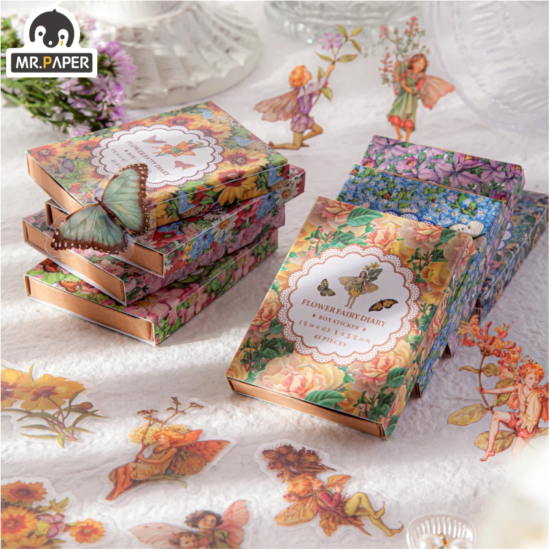Mr.paper Boxed Flower Fairy Diary Series Decorative Diary Stickers Scrapbook Planner Japanese Decorative Stationery Stickers
