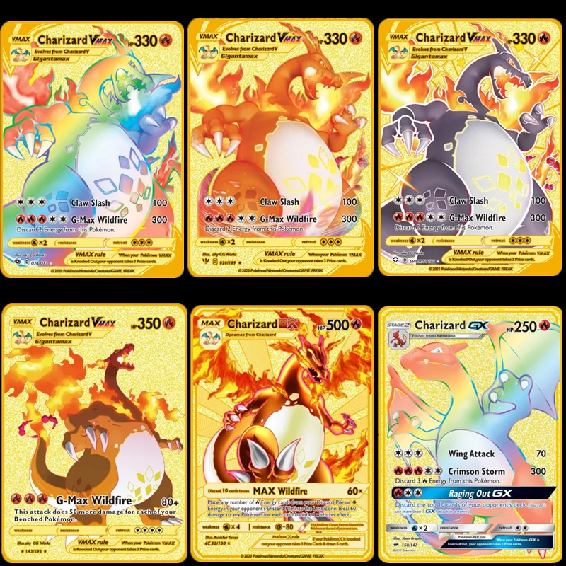 New Pokemon V Max Golden Metal Card Super Anime Collection Card Children's Toy Pikachu Mew Eevee Charizard Children's Gift