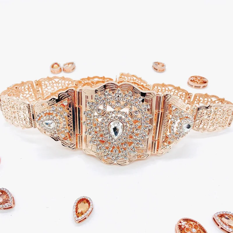 Morocco Women Caftan Belt Gold Color Red Green Stone Ethnic Wedding Dress Kaftan Abaya Metal Waist Chain Belt Jewelry