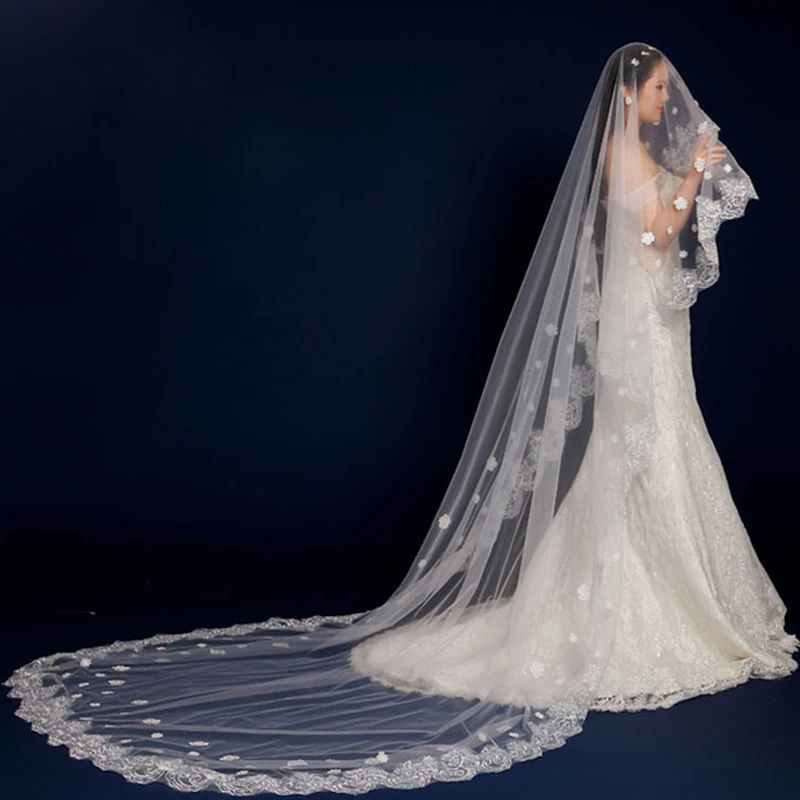 2021 On Sale Latest Arrival White Lace Edge White Tulle Bridal Wedding Veils One Tier Beaded 120cm Bride Veils Wedding Accessory