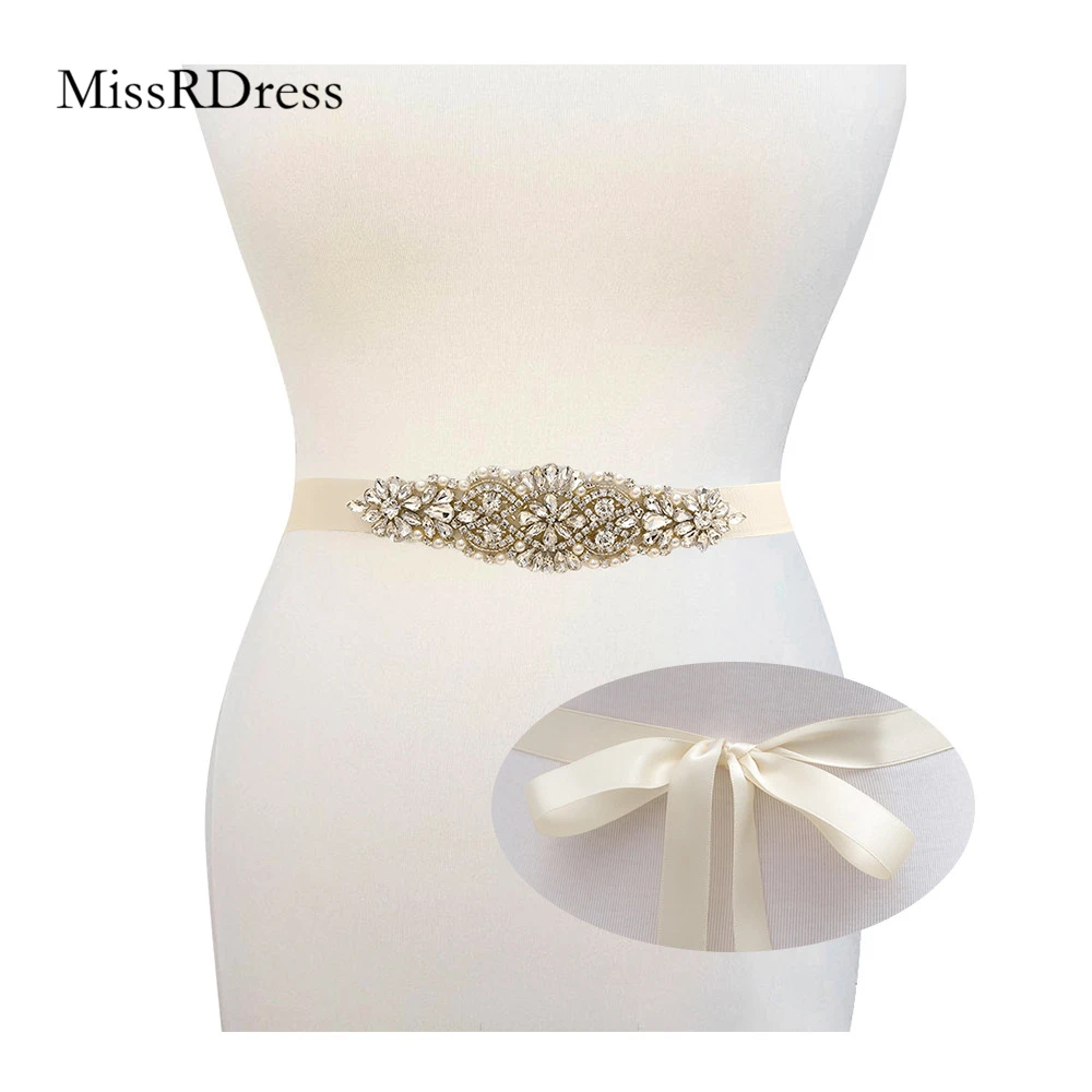 MissRDress Pearl Crystal Bridal Belt Rhinestones Wedding Belt Beads Bridal Sash Flower Belt For Wedding Dress Belt JK842
