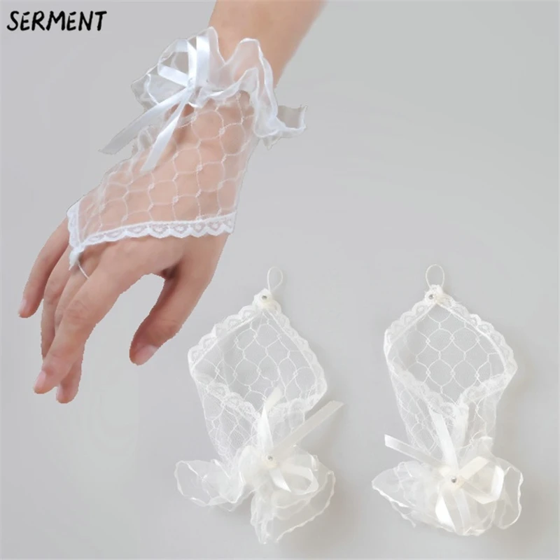 New Wedding Gloves Mid-Length Lace Bow Bridal Wedding Dress Full Dress Accessories
