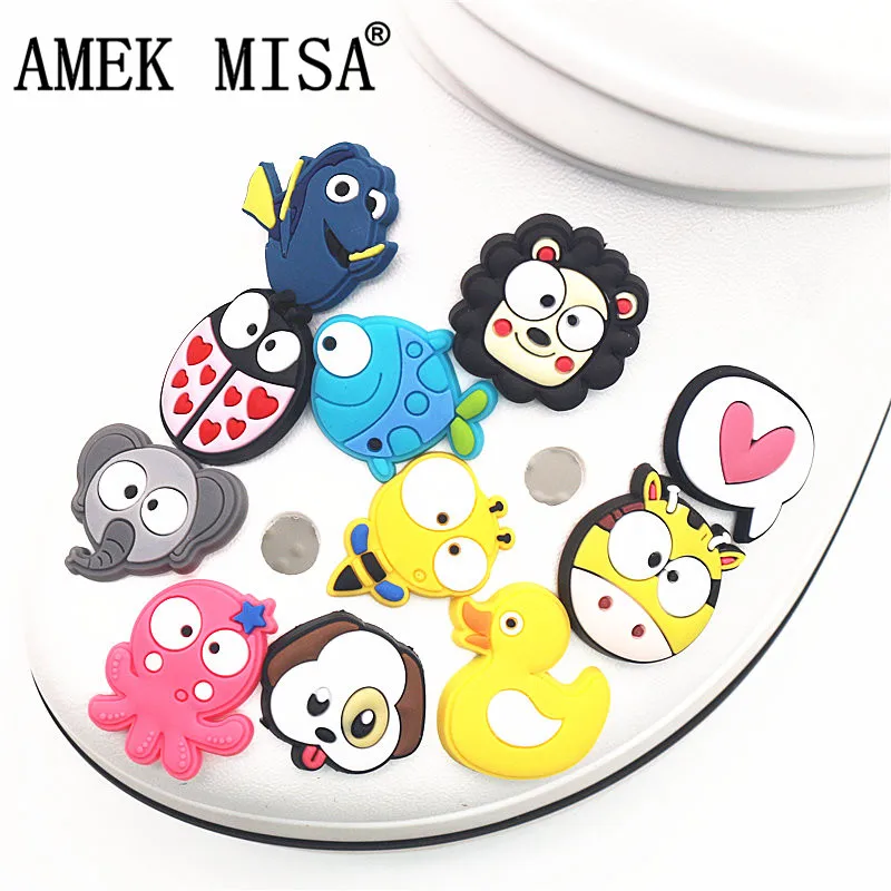 Single Sale 1Pcs Shoe Charms Accessories 12 Cute Animals Model Shoe Decoration for Wristband croc jibz Kid's Party X-mas gifts