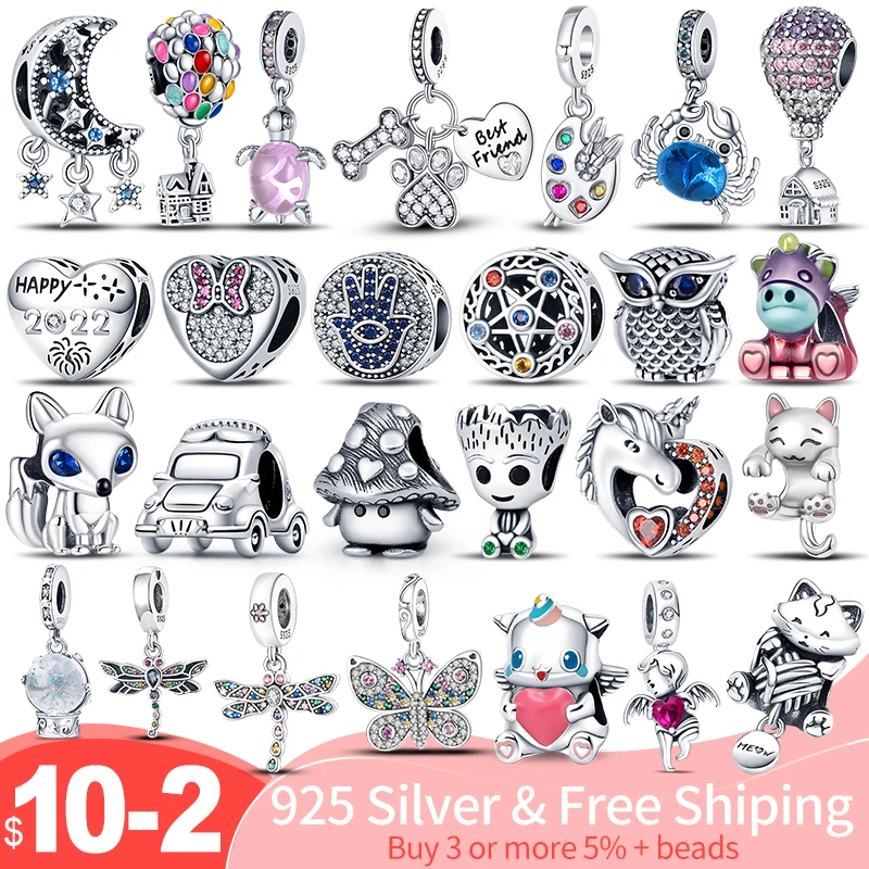 Fits Original Pandora Bracelet Necklace 925 Sterling Silver Animal Heart Shaped Charms Bead Women 925 Silver Pendant DIY Jewelry