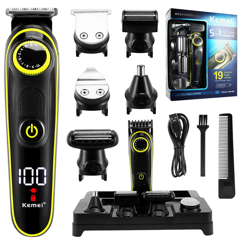 Professional Men's Hair Clipper Electric Beard Trimmer Kit LED Display Hair Cutting Blade USB Rechargeable Machine Hair Styling