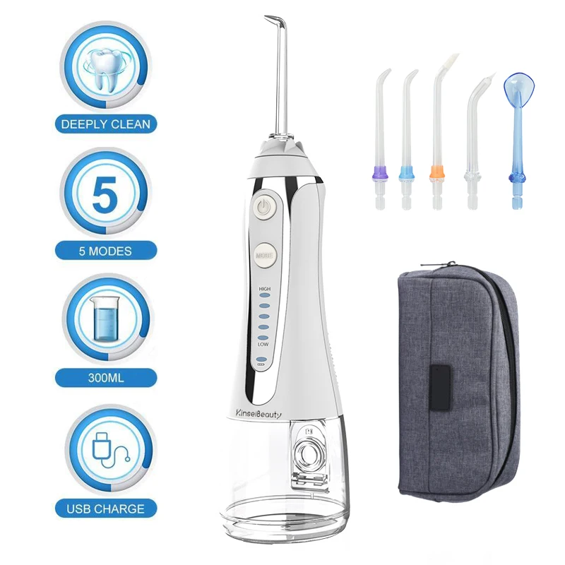 5 Modes Portable Oral Irrigator 300ml Dental Water Flosser Jet USB Rechargeable Irrigator Dental Teeth Cleaner + 5 Jet Tip & Bag