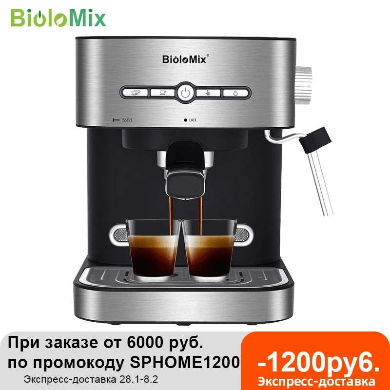 BioloMix 20 Bar 1050W Semi Automatic Espresso Coffee Machine Coffee Maker with Milk Frother Cafetera Cappuccino Hot Water Steam