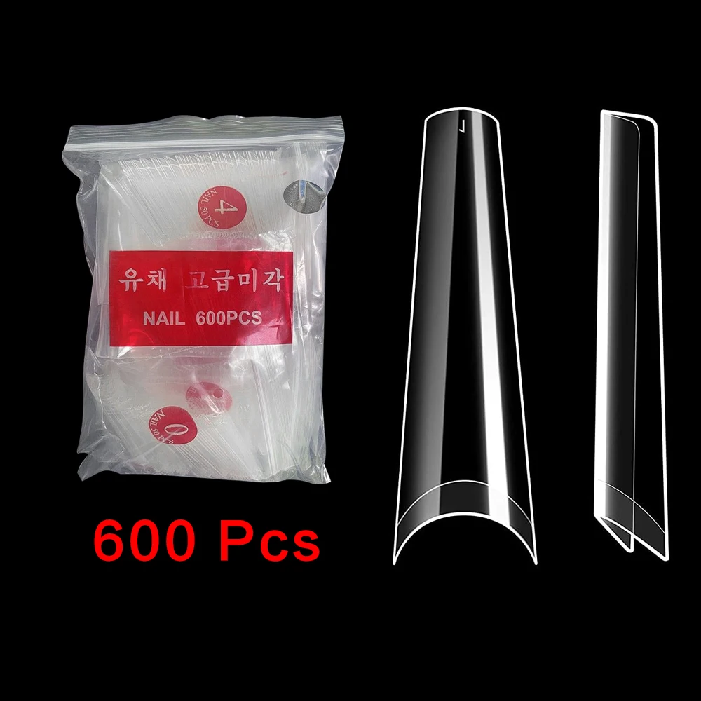 600Pcs Transparent Stiletto Fake Nail Tips Acrylic Ballerina Nail Tips Long Shape Half Cover Coffin Professional False Art Nail