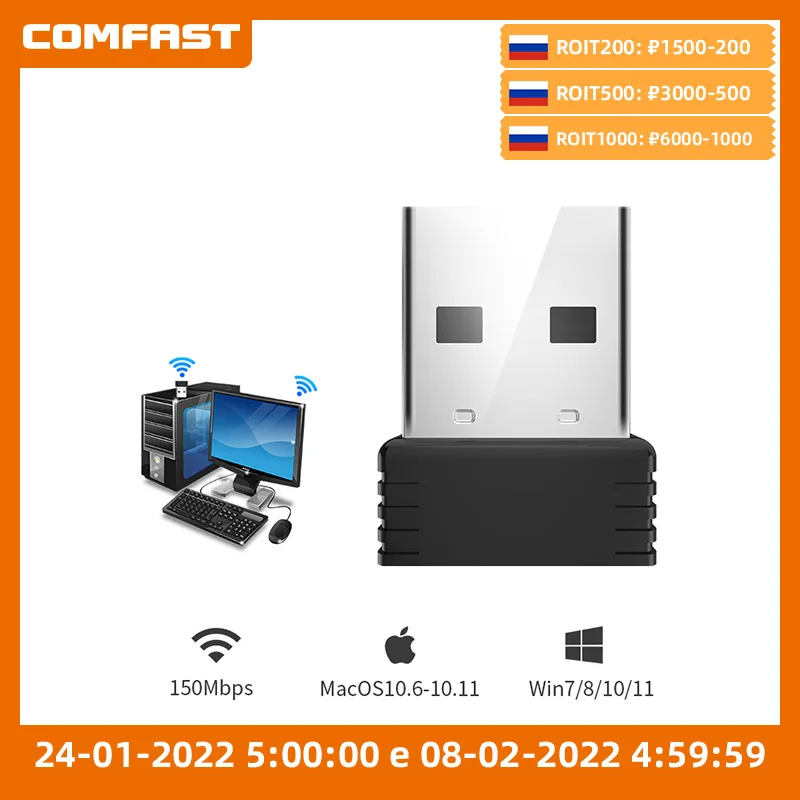 Mini USB Wifi Adapter 802.11b/g/n Antenna 150Mbps USB Wireless Receiver Dongle Network Card Laptop Wi-Fi Dongle PC Wifi Receive