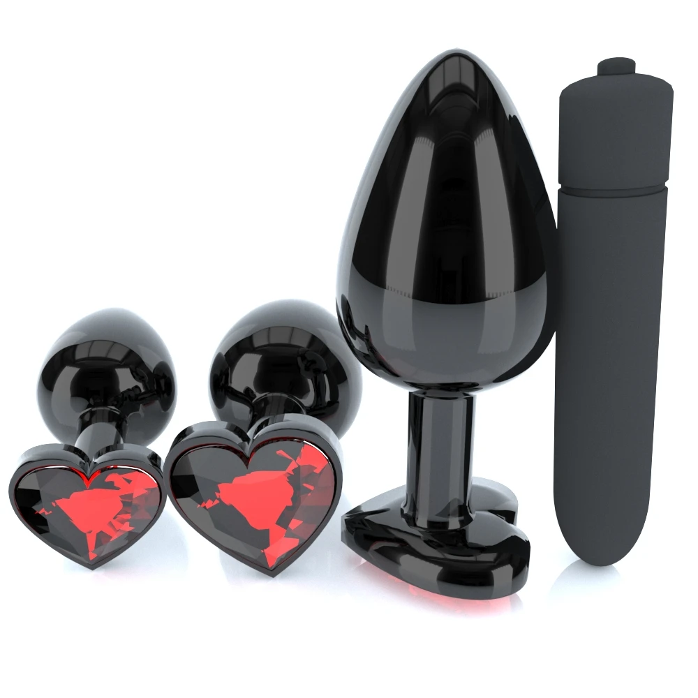Plating Black Metal Anal Plug Romantic Red Heart Crystal Base Mooth Butt Plug Anal Bead Couple Anus Dilator Metal Ball Massager