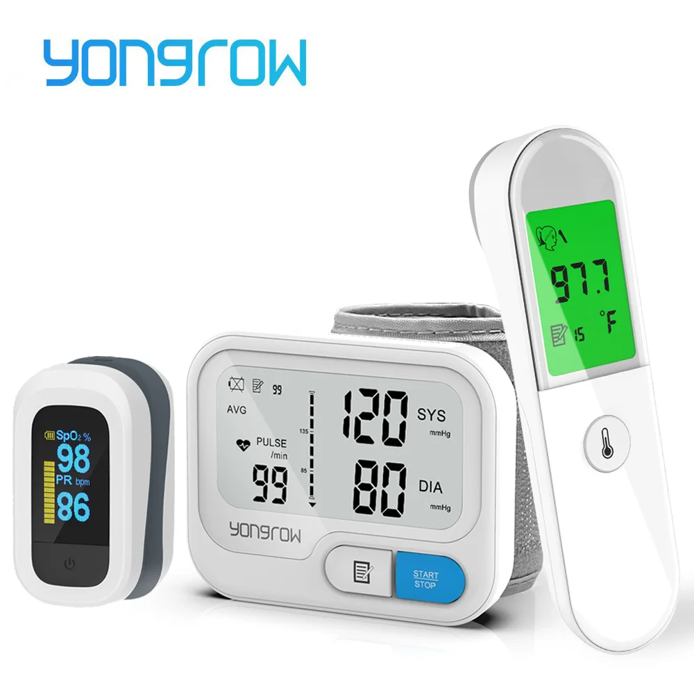 Yongrow Wrist Medical Digital Blood Pressure Monitor Sphygmomanometer Finger Pulse Oximeter body thermometer Temperature gun