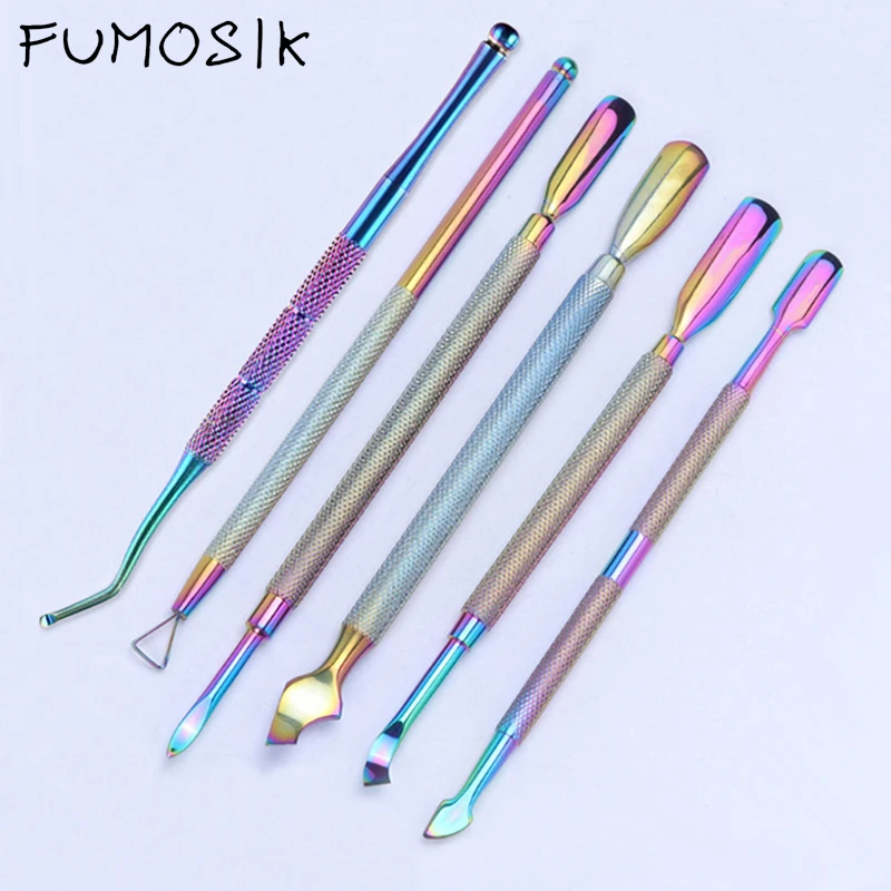 21 Style Rainbow Stainless Steel Nail Cuticle Pusher Tweezer Nail Art Files UV Gel Polish Remove Manicure Care Groove Clean Tool