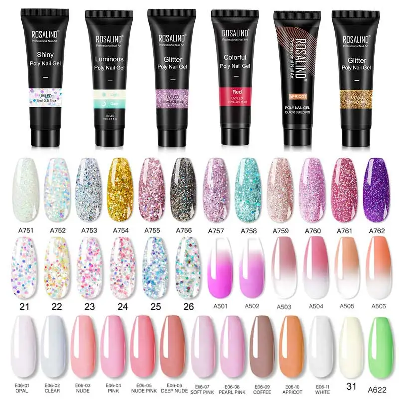 ROSALIND 15ml Poly Nail Gel Glitter Builder Gel Extensions For Manicure Nails Art Design Luminous Poly nails Gel Semi Permanent
