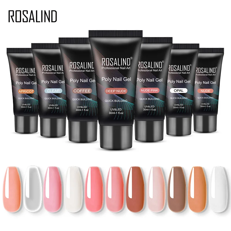 ROSALIND 15ml/30ml Poly Nail Gel Pure Color Acrylic Extension Builder Vernis Semi Permanent Crystal Quick Nail Gel Art Design