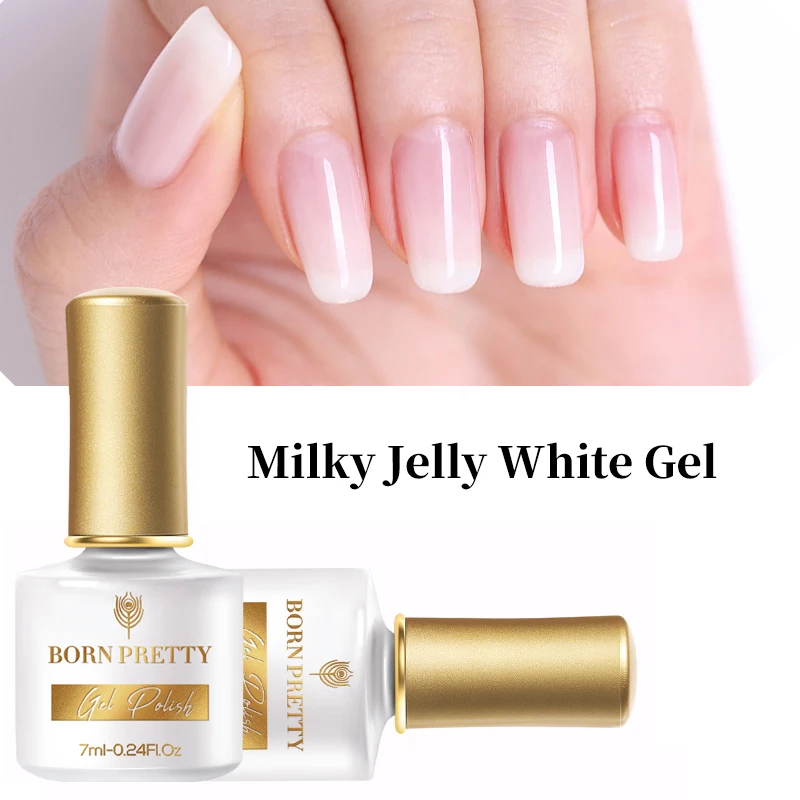 BORN PRETTY Milky Jelly Gel Nail Polish 7ml Pink Jelly Gel Polish No Wipe Top Coat White Soak Off Nail Art UV Gel Varnish