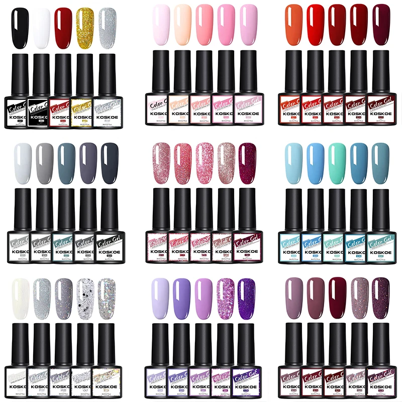 KOSKOE 2/4/5/6Pcs Nail Polish Gel Set Nails Hybrid Gel Vernis Semi Permanent Lot Shiny Glitter Soak Off UV LED Nail Gel Kit