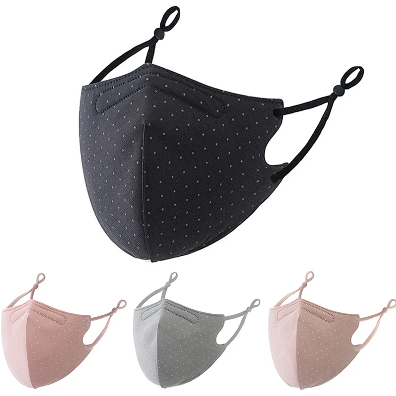Fashion Black Polka Dot Face Mask Dustproof Breathable Soft Cotton Masks Adult Mouth Mask Adjustable Washable Face Mask Women
