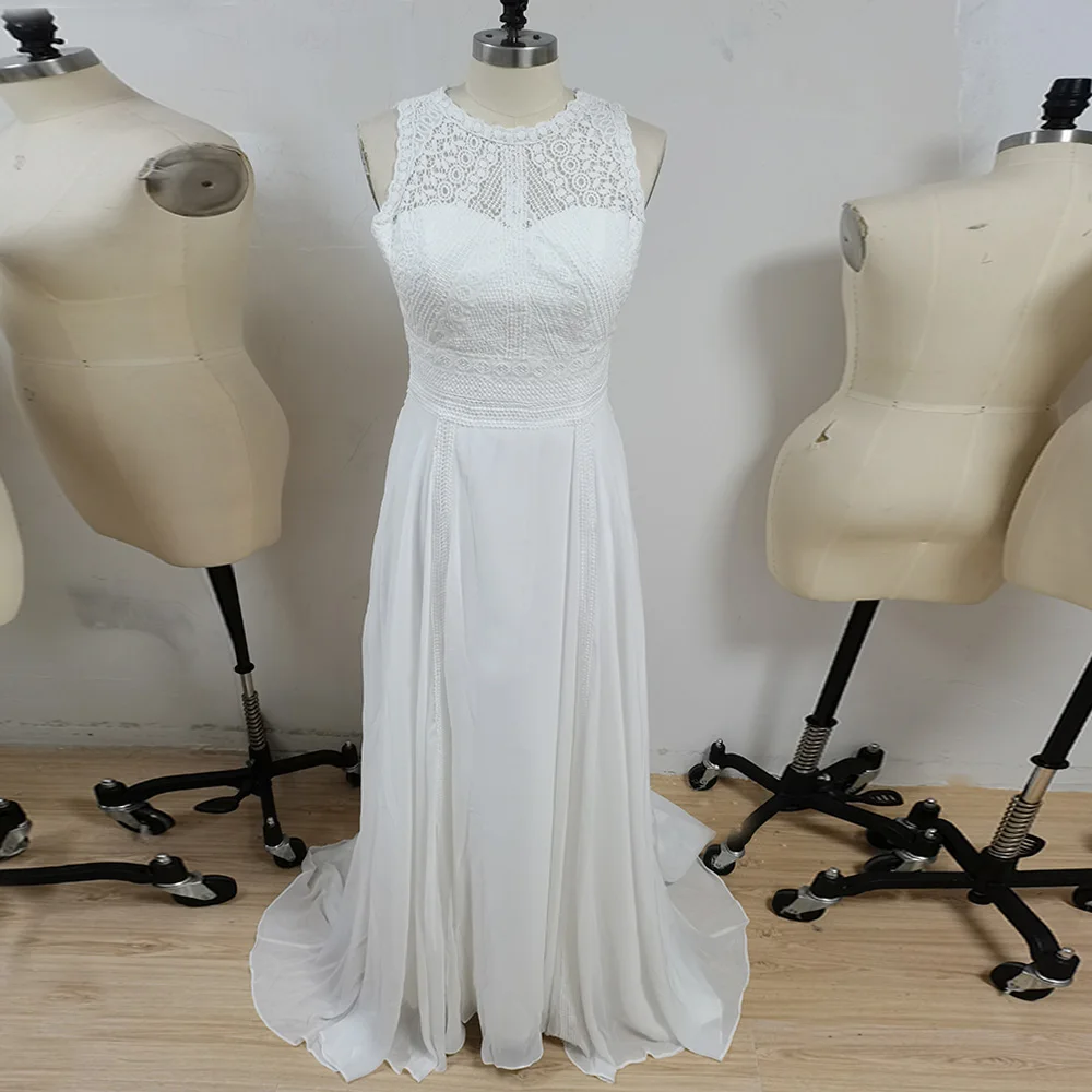 Chiffon Beach Wedding Dress 2020 Lace Boho Bride Dress Sexy Back Wedding Gown Custom Made Vestidos de novia
