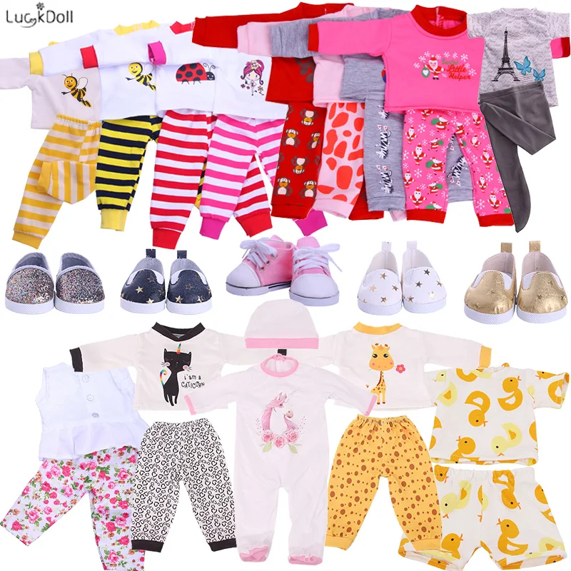 Promotio!2 Pcs/Set Cute Pajamas Doll Accessories Clothes Dress For 18 Inch Girl Doll & 43 cm New Born Baby Doll,Our Generation